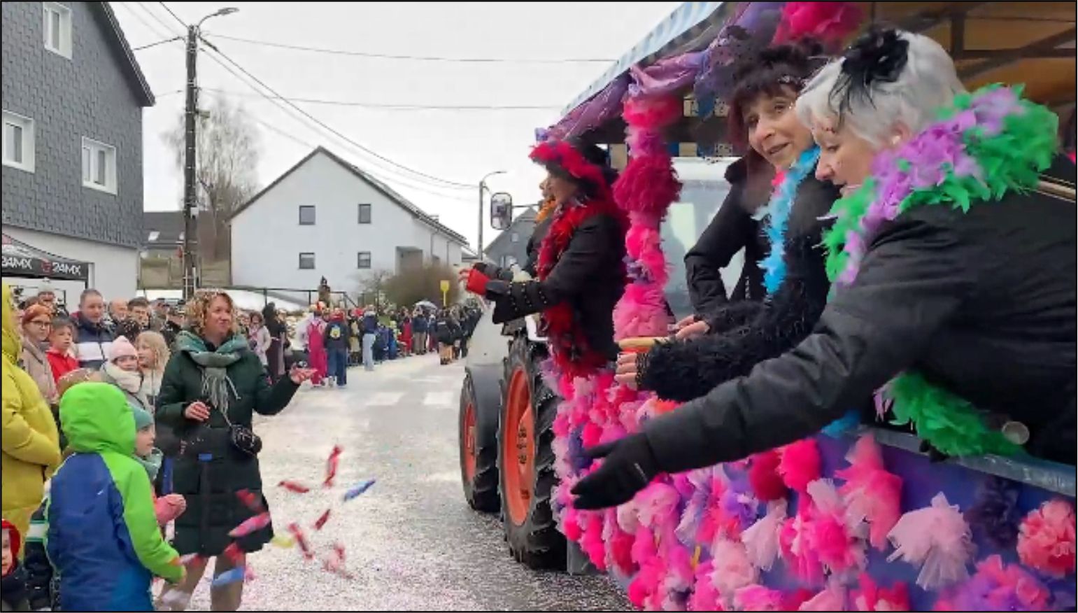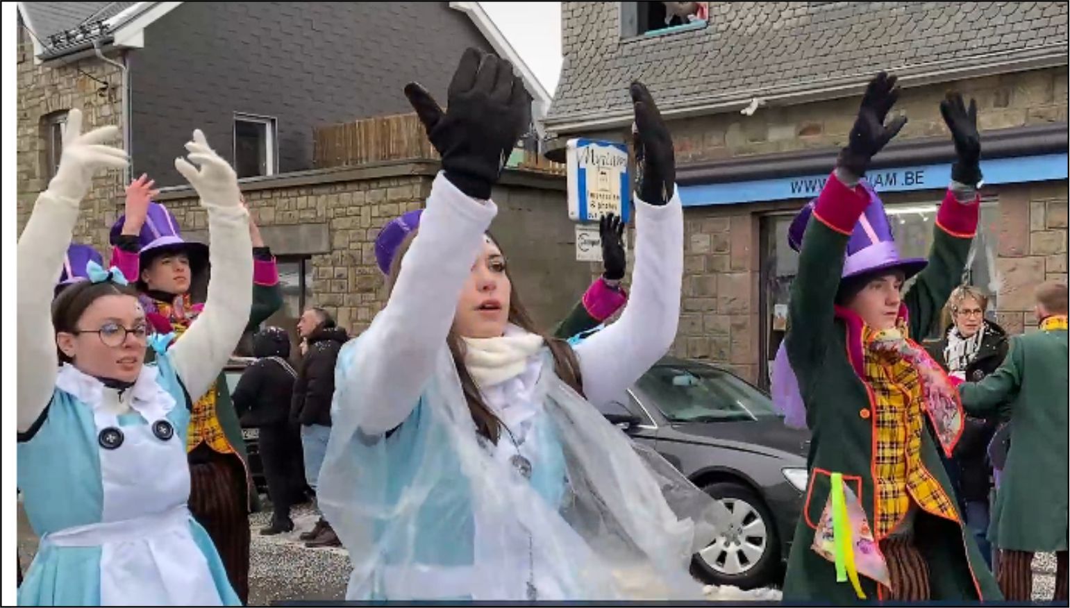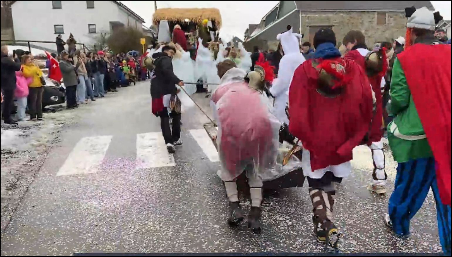 Büyük geçit töreninin başlamasından sadece birkaç dakika önce yaşanan değişken ve karlı havaya rağmen, 20 araçlık geçit töreninin tamamı bu öğleden sonra Faymonville'deydi. Elbette, bu yıl Harry Potter temalı Türk geçit töreni de vardı, ancak geçit törenindeki tek araçlar kesinlikle onlar değildi. Karnaval komitesinin bir üyesi olan Norbert Georges, "Bu eşsiz bir karnaval," demeyi seviyor. "Zihniyet açısından bile, Malmedy, Valon ve Alman etkilerinin bir karışımına sahibiz. Karnaval Prensi'miz yok ve geçit töreni büyük ölçüde çevre köylerden gelen gruplardan oluşuyor. Karnavalımızı bu kadar özgün kılan da bu."