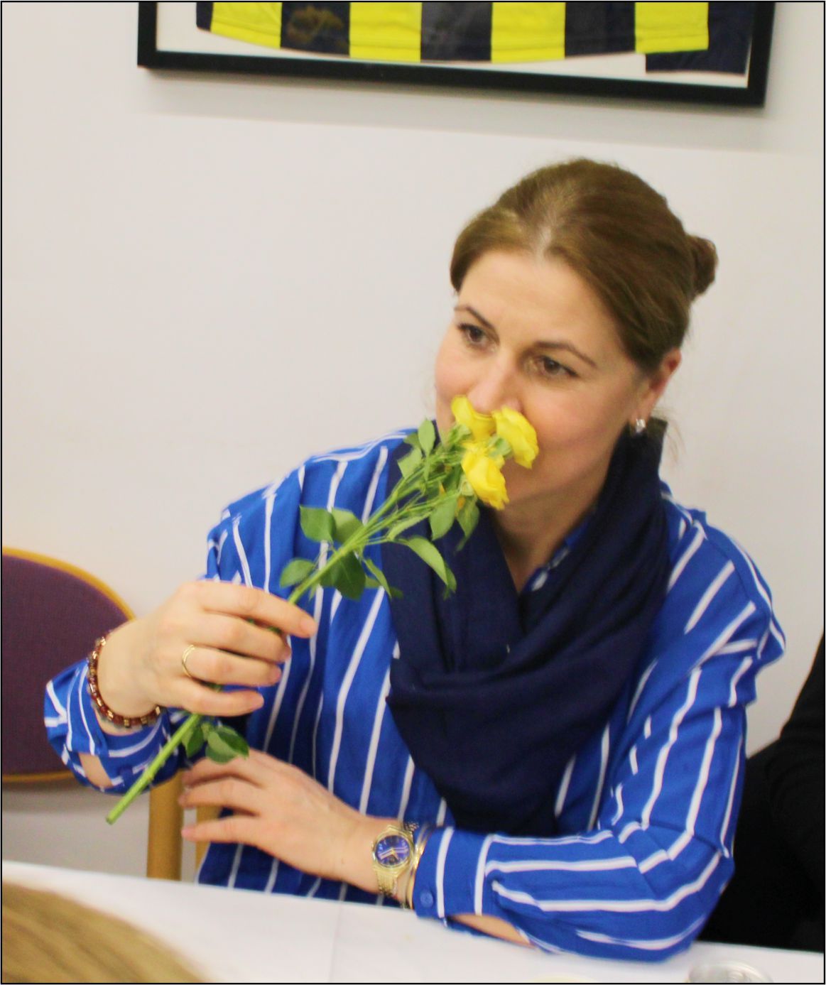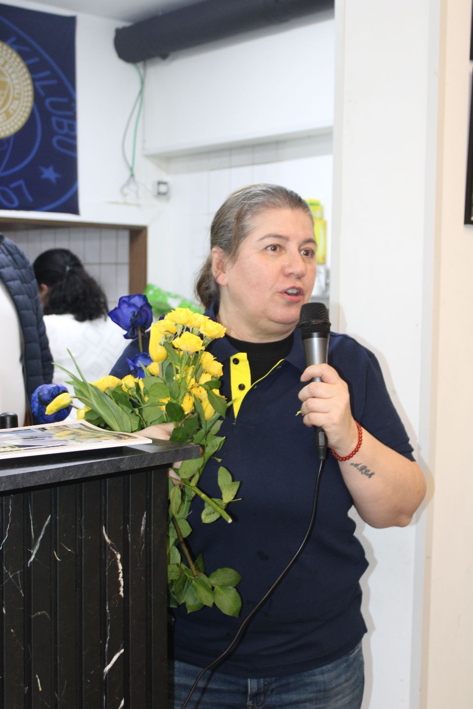 ‘8 Mart Dünya Kadınlar Günü’ nedeniyle Kadın Kolları Başkanı Ebru Alkan Manço, günün anlamı ile ilgili güzel bir konuşma yaparak, Kadın davetli ve genç kızlara sarı lacivert gül ve laleler takdim etti.