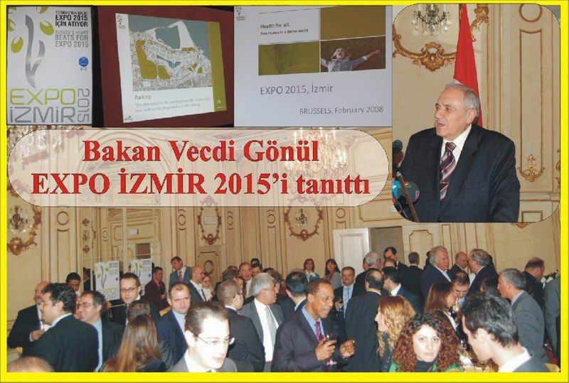Türkiye Cumhuriyeti Milli Savunma Bakanı Vecdi Gönül Belçika ve AB başkenti Brükselâde âEXPO İZMİR 2015 â için tanıtım resepsiyonuna katılarak İtalya Milanâla âEXPO 2015â için yarışan İzmir için des
