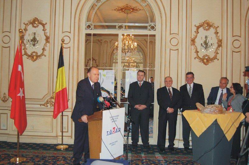 Türkiye Cumhuriyeti Milli Savunma Bakanı Vecdi Gönül Belçika ve AB başkenti Brükselâde âEXPO İZMİR 2015 â için tanıtım resepsiyonuna katılarak İtalya Milanâla âEXPO 2015â için yarışan İzmir için destek istedi. Milli Savunma Bakanı Vecdi Gönül, Türkiye Cumhuriyeti Brüksel Büyükelçiliği ve kısa adı (TÃSED) olan Türk Ãzel Sektör Derneği tarafından Hotel Plazaâda organize edilen resepsiyonda yabancı misyon şefleri Tösed üyeleri ve işadamlarına yaptığı konuşmada âİZMİR EXPO 2015âi çok önemsediklerini bu konu hakkında herkesten bu projeye destek vermeleriniâ istedi. Tösed temsilcilerinin açılış konuşmalarından sonra kürsüye gelen Gönül, âGerek Belçikalı, gerekse burada görev yapan diğer ülke temsilcilerine âİzmir Expo 2015â in önemi güzel bir şekilde anlatılarak desteklerinin sağlanması gerektiğiniâ vurguladı. Bu konuda buradaki tüm Temsilcilere büyük görev düşmekte. Belçikaâlıların bu konuda bizlere destek vermelerini sağlayacak ikili görüşmelerin sürdürülmesinin yararlı olacağınınâ altını çizdi. İzmirâde bir dönem val ive İzmir milletvekili de olan Vecdi Gönül âİzmirâin eski bir şehir oluşu, çeşitli medeniyetlere yurt olması denizi, havası ve yeşilliği ile güzel bir aday şehri olduğunuâ belirterek, âİzmir Batı ve Doğu medeniyetlerinin kesiştiği bir bölgede yer alan güzel bir şehirdir. Türk halkı ve hükümeti İzmir Expo 2015âi en iyi bir şekilde organize edecek güçtedir. Türk halkı kendisini bu projeye konsantre etmiştir. Bu organizasyonu en iyi bir şekilde sonuçlandıracak tüm çalışmalar tüm hızıyla devam ediyor » dedi. Slayt gösterileri ile projenin tanıtımı yapıldı. Büyükelçi Nezihi Ãzkaya´nın İngilizce olarak yaptığı tanıtım konuşması slayt gösterileriyle desteklendi. Tanıtım resepsiyonuna Büyükelçi Nezihi Ãzkaya, Sefire Yelda Tanlay, Büyükelçilik müsteşarları Demet Şekercioğlu, Can İncesu, Kültür ve Turizm Müşaviri Mehmet Akyapı, Askeri Ataşe Kurmay Albay Sadık Akyar, Basın Müşaviri Yusuf Seki, TÃSED Başkanı Vakur Dağdeviren, TÃSED Yüksek İstişare Komisyonu Başkanı Yaşar Tümbaş, TÃSED yönetim kurulu üyeleri, Evere Belediye Meclis üyesi ve Bakan Danışmanı Nebahat Acar, Maliye Müşaviri Kürşat Ãzgeler, Belçika Türk Dernekleri Birliği Başkanı Rıfat Can, Türk Spor Federasyon Başkanı Hüseyin Dönmez, Avukat Fikriye Güzel, Av.Kürşat Bilge, Sosyal Danışman Birgül Kapaklıkaya, Belçika Haber Halkla İlişkiler Müdiresi Zerrin Aydın ve işadamları katıldı. Program ikili görüşmelerle son buldu. www.belcikahaber.be