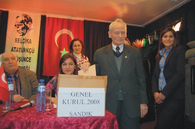 Kısa adı ´ BADD´ olan Belçika Atatürkçü Düşünce Derneği´nin yapılan olağan genel kurul toplantısında yeni yöneticiler belirlendi. BADD´nin son yöneticileri İsmail Sönmez başkanlığında genel kurulda yer aldı. Adnan kotaoğlu, Ulaş Sarıtaş, Mustafa Tanrıkulu, Seyfullah Yağlı, Ali İnce, Yusuf Cinal genel kurulun karşısında son kez bulunarak, Başkan İsmail Sönmez´in yaptığı açış konuşmasını birilkte dinlediler. Mustafa Kemal ve silah arkadaşları ile şehitlerimiz için durulan bir dakikalık saygı duruşunu takiben hep birlikte İstiklal Marşı söylendi. Daha sonra ise Divan başkanlığına emekli Yarbay Rıza Ãzen getirildi. Divan Başkanlığı yardımcılığına ise Osman Pot ve katip üyeliklere de Semiha Yoğurtçu(Erdemir) ile Funda İnce seçildilr. SEÃİMLER Genel kurulda yapılan seçimler soucu Adnan Kotaoğlu (48), Türkay Avcı (48), Ulaş Sarıtaş(47), İsmail Sönmez (45), Mustafa Tanrıkulu (43), Semiha Yoğurtçu (43), Fevzi Bursalı (41) oy ayarak asil üyeliklere ve Seyfullah Yağlı (39), Ali İnce (39), Ãlkü Yıldırım (32), Haşim Ekeroğlu (30), Muzaffer Topgün (27) oy ile yedek üyeliklere seçildiler. DENETLEME KURULU Ãte yandan Denetleme Kurulu´na da Hamza Güler(48),Muammer Derinöz(47),Carullah Tanrıkulu( 39),Hamit Soysal 15, Derviş Ãçkoyulu(13) oy ile seçildikleri açıklandı. ONUR KURULU BADD Onur Kurulu üyeliklerine de ;Hayati Kutlu(38),Mehmet Alaca(38),Süleyman Erenler(37),Ulaş Ãztrk(32) ve Mehmet Edeer (16) oy ile seçilmeyi başardılar. ATATÃRKÃÃLER BİRLEŞMELİ Genel Kurul´da BADD Başkanı İsmail Sönmez, Başkan adayı Fevzi Bursalı,eski başkanlardan Esat Ãmit Ağça, Divan Başkanı Rıza Ãzen, BADD 2.Başkanı Adnan Kotaoğlu, BADD Sekreteri Ulaş Sarıtaş Binfikir Yazarı Erdinç Utku ve diğer üyeler söz alarak;´ Atatürkçüleriin artık birleşmesi gerektiğini ve Türkiye´den gelen haberlerin pek hoş olmadığını, Türk askerinin sınır ötesi opurasyona başladığını, şehitlerimizin olduğunu ve Belçika´da artık bölünmüşlüğe bir son verilmesi gerektiği, Brüksel´de Kemalistlerin sayısal olarak çoğunlukta olduğu, BADD için artık birleşme günü geldiği,planlı ve kararlı etkinlikler için le le verilesi gerektiği, dedikoduların Atatürkçülere akışmadığı´ açık ve net bir şekilde seslendirildi. Büyük bir katılımın olduğu genel kurul sonrası yönetim kuruluna seçilenler ilk toplantılarını yaparak, BADD´ de görev bölümü için nabız yokladılar. kaynak: yenihaber.