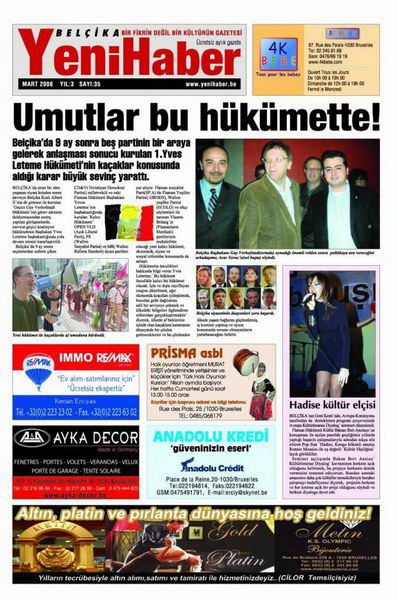 Genel Koordinatörlüğünü Eğitimci-gazeteci-yazar Yusuf Cinal'ın yaptığı YeniHaber Gazete kısa bir aradan sonra yeni imajıyla çıktı. Görsel, mizampaj ve haber içerikli yönüyle dolu dolu olan YeniHaber´in 35. sayısı baskısı büyük beğeni topladı. Başta Brüksel olmak üzere Anvers, Sint-Niklaas, Temse, Zele ve diğer kentlerde dağıtılmaya başlandı. Belçika YeniHaber Gazetesi ´ ´Umutlar bu hükümette´ manşeti ile Belçika´da siyasi krizi sona erdiren hükümetten vatandaşların çok şey beklediğini ortaya koydu. Belçika YeniHaber Gazetesi´nin yeni bir anlayışla hazırlandığını söyleyen Cinal;´ Ekibimiz belli. Arkadaşlarımız büyük özveri ile hem internet üzerindeki gazetenin hazırlanmasına ve hem de´Söz uçar, yazı kalır´ anlayışı ile YeniHaberi´in hazırlanmasına büyük katkı yapıyorlar. Bugüne kadar edindiğimiz tecrübelerden de yararlanarak, yolumuza devam edeceğiz´ diyerek, YeniHaber´in beğenilmseniden büyük mutluluk duyduğunuve amaçlarının vatandaşları bilgilendirmek olduğunu söyledi. Mart sayısı ile okuyucusuna ´Merhaba´ diyen ve Belçika YeniHaber ayda iki defa olarak hazırlanacak ve gazetenin hedefinin haftalık olarak yayına girmek olduğu belirtildi.
