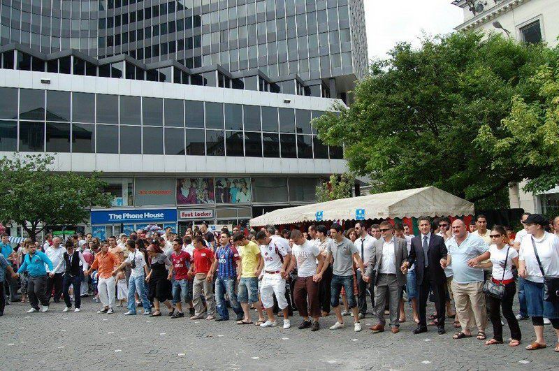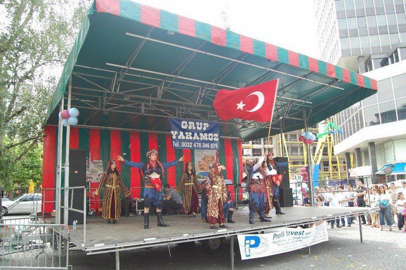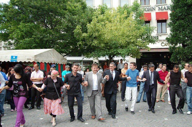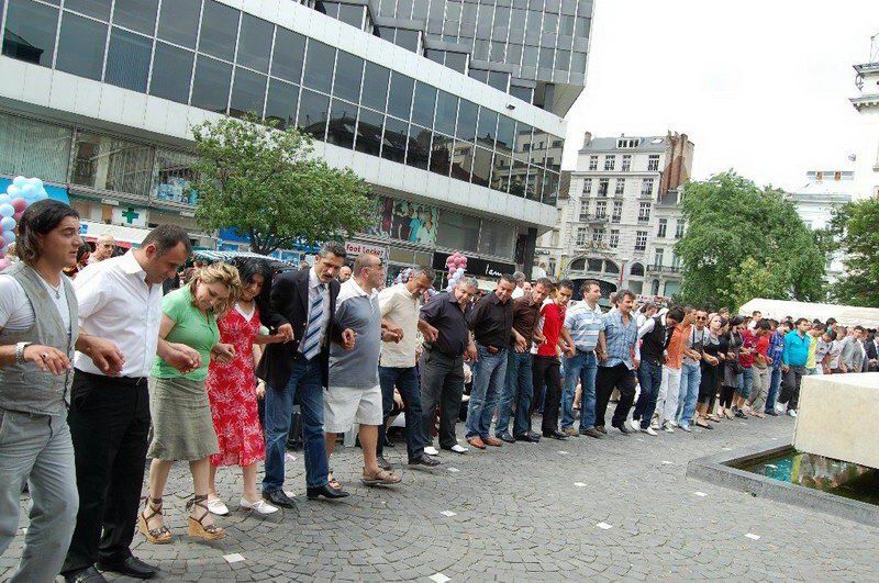 Belçika Trabzonlular Derneği'nin Place de la Monnaie'de organize ettiği 'Karadeniz Kültürünü' tanıtmaya yönelik Karadeniz Festivali coşkulu geçti. Karadeniz yöresi folklör ekipleri eşliğinde yüzlerce kişi horon tepti. Kemençe eşliğinde oynanan Horonlara bazı Belçikalıların da katılarak oynamaları dikkat çekti. Karadeniz bölgesi kültürel etkinliklerde bir taraftan bölgesel yemekler olan hamsi ve sarma yenilirken diğer taraftnda yöre sanatçılarının eşliğindeki oyunlar oynandı. Brüksel'in merkezi yerindeki etkinlikleri turistler ve Belçikalılar dikkatle izledi. T.C. Brüksel Büyükelçisi Fuat Tanlay, Sefire Yelda Tanlay, Bakan Emir Kır, Schaerbeek Belediye Başkan Yardımcısı Sait Köse, CDH Partisi MKYK üyesi ve Schaerbeek belediye Meclis Ãyesi Halis Kökten, Schaerbeek belediye Meclis Ãyeleri Derya Aliç, Sadık Köksal, İbrahim Dönmez, Diyanet kadın Kolları Başkanı Dudu Akçalık, La Maison de l'Avenir Derneği Başkanı Gül Demiryürek, Sosyal Danışman Birgül Kapaklıkaya, Belçika Halkla İlişkiler Müdiresi Zerrin Aydın, Trabzon Dernek Başkanı Adnan Demir, yönetim kurulu üyeleri ve kalabalık davetli topluluğu katıldı. Plaketlerin verildiği program ile ilgili gelişmeleri diğer başlıktaki haberlerimizde bulabirisiniz. Bizi izlemeye devam ediniz. Resim galerimizde kendinizi bulabilirsiniz... Belcikahaber.be