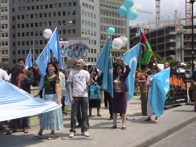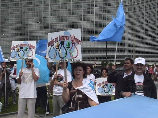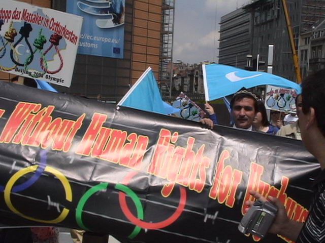 Ãin zulmüne maruz kalan Uygur Türkleri Belçika ve Avrupa'nın başkenti Brüksel´de bulunan Avrupa Birliği önünde Pekin´de yapılacak olan 2008 Olimpiyatlarını protesto ettiler. Bir grup göstericiler taşıdıkları pankat ve bayraklarla Ãin aleyhine slogan attılar. Kınama bildirisi okuyan protestocular, ´Uygurlara yönelik zulme son verilsin'. Gösteriye Belçika İslam Federasyonu başkanı Zeki Bayraktar´ın da katılması dikkat çekti. Gösteri olaysız son buldu.