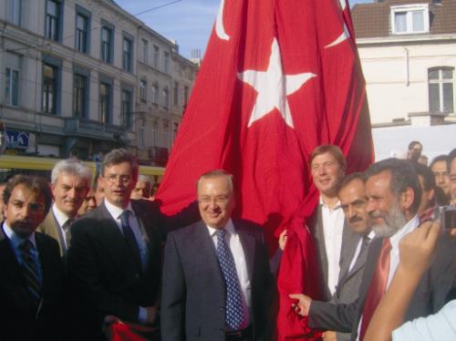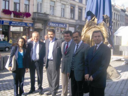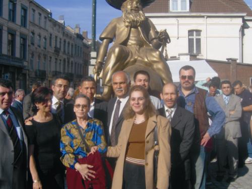 Türk Mahallesi´ olarak adlandırılan ve Türklerin yoÄun olarak yaÅadıÄı Schaerbeek´in Rue Gallait´e kaidesi konan hoca heykeli açılıÅı arife günü yapıldı. Uzun bir zamandan beri dikilmesi beklenen heykel dikilmiÅ ve açılıÅı yapılarak tartıÅmalara da son verildi. Türk bayraÄına sarılı hoca heykeli kalabalık davetli topluluÄunun hazır bulunduÄu bir törenle açıldı. Törene Schaerbeek Belediye BaÅkanı Clerfayt, Belçika BaÅbakan Yardımcısı ve Adalet Bakanı Laurette Onkelinx, Brüksel BaÅkonsolosu Mehmet Ãzyıldız, Schaerbeek belediye baÅkan yardımcısı Sait Köse, Georges Verzin, Etienne Noel, Bernard Guillaume, Mohamed Lahlali, Jean -Pierre Van Gorp, Brüksel Bölge milletvekili Emin Ãzkara, belediye meclis üyesi Eddy Courtheoux, belediye meclis üyesi Mustafa Ãztürk, MR (Reform Hareketi) adayları Sadık Köksal, Filiz Güles, ReÅat Yırtık, MR Evere adayı Belma Tek, PS Molenbeek adayı Åahin ÃalıÅan, PS(Parti Sosyalist) adayları Derya Alıç, İbrahim Dönmez, Murat Denizli, Tülay Nalbant, Leyla Ertorun, PS Evere adayı Ali İnce, CDH(Hıristiyan Demokrat Parti) Evere adayı Nebahat Acar, CDH(merkez Hümanist Parti) Merkez Belediye Meclis adayları Ersin Yüksel, YeÅim Koçak, PS Merkez Belediye Meclisi adayı Åevket Temiz, Liste RB( Renouveau Bruxelles) adayı Jacques Oberwoıts, Jean-Louis Peters, Belçika İslam federasyon BaÅkanı Zeki Bayraktar, Belçika Türk Federasyon baÅkanı Zeki Yarol, EmirdaÄlılar ve Yöresi Sosyal ve DayanıÅma DerneÄi BaÅkanı Metin Edeer, Belçika Atatürkçü DüÅünce DerneÄi baÅkanı Mahir Pala, Avrasya İletiÅin Halkla İliÅkiker Müdiresi Zerrin Aydın vs. sivil toplum kuruluÅ temsilcileri yanında kalabalık bir halk kitlesi katıldı. Nasreddin Hoca Heykelinin planlanması, projelenmesi ve getirilmesi ile ilgili bilgiler verildi. Nasreddin Hoca fıkralarının anlatıldıÄı törende Brüksel BaÅkonsolosu Mehmet Ãzyıldız, Belediye BaÅkanı Bernard Clerfayt, Belediye BaÅkan Yardımcısı Sait Köse birer konuÅma yaparak günün anlam ve önemi üzerinde durdular. AçılıÅ tören sonrası Türk Folklör Ekibi´nin gösterileri ilgiyle izlendi. Siyasilerin hep birlikte halay çekmesi ilginç oldu. ÃeÅitli tartıÅmalara neden olan hocanın heykeli dikildi, proje kavgası da bitti. Ama en önemlisi kim tarafından düÅünülürde düÅünülsün Belçika ve Türk halklarının dostluÄunu simgeleyen bu açılıÅın en güzel yanı tüm siyasilerin aynı duygu ve düÅünceyle bir arada olmasıydı. Sözümüzü Sait Köse'nin sözleriyle noktalayalım. Hoca hiç birimize ait deÄil, Hoca hepimizindir....
