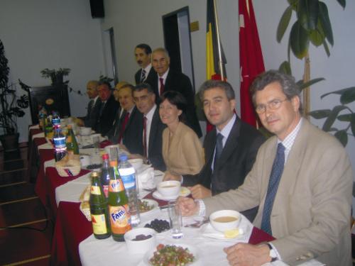Diyanet Müşavirliğince Belçika-Türk Diyanet Vakfı salonunda Büyükelçilik camiasına iftar yemeği verildi. Din Hizmetleri Müşavirliğini Tedbirle görevli Ãmer Faruk Turan'ın ev sahipliği yaptığı iftara, T.C Brüksel Büyükelçisi Fuat Tanlay, Pakistan Büyükelçisi Sait Halit, KKTC Büyükelçi Temsilcisi Yalçın Vahit, Başbakan Yardımcısı ve Adalet Bakanı Laurette Onkelinx, Ãevre Bakanı Emir Kır, T.C Brüksel Başkonsolosu Mehmet Ãzyıldız, Anvers Başkonsolosu Gürol Sökmensüer, Schaerbeek Belediye Başkanı Bernard Clerfayt, Saint-Josse-ten-Noode Belediye Başkanı Jean Demannez, Müslüman Temsil Kurumu (Exécutif) Başkanı Coşkun Beyazgül, Muavin Konsolos Hasan Solak, Konsolos Muavini Selen Evcit, Eğitim Müşaviri Tolga Yağızatlı, Basın Müşaviri Yusuf Seki, AB Tarım Müşaviri Selahattin Mermerci, Din Hizmetlerinden Ali Gün, Diyanet Cami Başkanı Osman Duran, Diyanet Kadın Kolları Başkanı Dudu Akçalık, Diyanet Yönetim kurulu üyesi Engin Ãzdemir, Saint Josse PS adayı Kadir Konakçı'nın yanında elçilik personelinden bir gurupta katıldı. Ãmer Faruk Turan yaptığı kısa konuşmasında davetlilere teşekkür ederek davetlerine katlımlarından dolayı herkese teşekkür etti. Turan, Ramazan'ın bereket ve rahmet ayı olduğunu bu ayda tüm güzellikleri bir arada yaşıyoruz. İnsanlarımızın yardımlaşma ve kaynaşma duygulasrının arttığınıi onbir ayın sultanı diye nitelenen bu ayda Kuran'ı Kerim yeryüzüne inmiştir. Bu rahmet ayını tüm müslümanlara ve insanlığa hayırlar getirmesini diliyorum" dedi. Edilen dualardan sonra, program son buldu.
