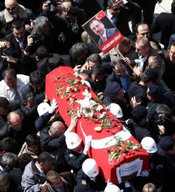 Kahramanmaraş'tan Yozgat'a giderken bindiği helikopterin düşmesi sonucu hayatını kaybeden Büyük Birlik Partisi (BBP) Genel Başkanı Muhsin Yazıcıoğlu son yolculuğuna uğurlanıyor. Kendisine en çok ihtiyaç duyulduğunda milleti için her türlü özveriyi gösteren Yazıcıoğlu'nu milleti de ebedi istihratına giderken yalnız bırakmadı. Yüzbinlerce insan onun için bir araya gözyaşı içinde dua etti. Helikopter kazasında hayatını kaybeden BBP Genel Başkanı Muhsin Yazıcıoğlu'nun cenazesi, partililer tarafından Gazi Hastanesi'nin morgundan alındı. Yazıcıoğlu'nun cenazesi ambulansa konulurken; partililerin de gözyaşları sel oldu. Yazıcıoğlu'nun cenazesini taşıyan ambulansın bulunduğu kortej, TBMM'deki tören için hareket et ettiğinde duygular da kabardı. Cenaze taşınırken sık sık tekbir getirildi. Ellerinde Yazıcıoğlu'nun fotoğraflarının bulunduğu dövizler taşıyan partililer, yakalarına da parti amblemi bulunan kokart taktılar. Partililer, ambulansın arkasında "Türk ve İslam aleminin başı sağ olsun", "Ãşüyoruz başkan", "Seni beklemek güzeldi" yazan dövizleri taşıdı. Sabahın erken saatlerden itibaren Yazıcıoğlu'nun memleketi Sivas başta olmak üzere çeşitli illerden otobüslerle, özel araçlar ve trenle başkente akın eden çok sayıda vatandaş Alperen'ini uğurlamak için toplandı. Yürüyüş sırasında kaldırımda bekleyen ve binaların camlarından grubun geçişini izleyen vatandaşlar da tekbir getirip dua etti. Anıtkabir'in bulunduğu bahçede çalışan askerler ise Yazıcıoğlu'nun cenazesi geçerken saygı duruşuna geçtiler. Polis, cenaze töreni boyunca geniş güvenlik önlemleri aldı. Bir helikopter grup üzerinde sürekli güvenlik uçuşu yaptı. Yollar tören dolayısıyla araç trafiğine kapatıldı. Kortej, Mareşal Fevzi Ãakmak Caddesi ve İnönü Bulvarı güzergahını izleyerek, TBMM'ye ulaştı. Burada devletin üst düzey isimleri, siyasi parti liderleri, yüksek yargı organlarının mensupları, askeri erkan ile çok sayıda partilinin katıldığı bir tören düzenlendi. 7'DEN 70'E HERKES ORDAYDI TBMM'deki törenin ardından BBP Genel Başkanı Muhsin Yazıcıoğlu'nun cenaze namazı Kocatepe Camisi'nne kılındı. Kızılay görevlileri cenaze töreni öncesinde cami avlusundaki vatandaşlara küçük kutularla lokum dağıttı. Cenaze törenine katılan bazı kadınlar ise Kur'an okudu. Törene Muhsin Yazıcıoğlu'nun annesi Fidan Yazıcıoğlu, eşi Güleser Yazıcıoğlu, kızı Firuze Yazıcıoğlu, oğlu Furkan Yazıcıoğlu ve aile yakınları, Cumhurbaşkanı Abdullah Gül, TBMM Başkanı Köksal Toptan, Başbakan Recep Tayyip Erdoğan, Anayasa Mahkemesi Başkanı Haşim Kılıç, Genelkurmay Başkanı Orgeneral İlker Başbuğ, CHP Genel Başkanı Deniz Baykal, Devlet Bakanı ve Başbakan yardımcıları Cemil Ãiçek ve Hayati Yazıcı, Bakanlar Kurulunun bazı üyeleri, Genelkurmay 2. Başkanı Orgeneral Hasan Iğsız, İstanbul Valisi Muammer Güler, Ankara Valisi Kemal Ãnal, MHP Genel Başkanı Devlet Bahçeli, eski Başbakanlardan Bülent Ecevit'in eşi Rahşan Ecevit, TOBB Başkanı Rifat Hisarcıklıoğlu, ATO Başkanı Sinan Aygün, eski DP Genel Başkanı Mehmet Ağar, eski Anavatan Partisi Genel Başkanı Erkan Mumcu, Ankara Büyükşehir Belediye Başkanı Melih Gökçek, İstanbul Büyükşehir Belediye Başkanı Kadir Topbaş, Emniyet Genel Müdürü Oğuz Kağan Köksal, RTÃK Başkanı Zahid Akman, eski TBMM Başkanı Bülent Arınç, eski Devlet Bakanı ve Başbakan Yardımcısı Abdüllatif Şener, eski Diyanet İşleri Başkanı Mehmet Nuri Yılmaz, eski İçişleri Bakanı Sadettin Tantan, Hak-İş Genel Başkanı Salim Uslu, emekli Yarbay Korkut Eken, çok sayıda siyasi parti temsilcisi, partililer, Alperen Ocakları üyeleri ve vatandaşlar katıldı. Yazıcıoğlu'nun cenaze namazını ise Diyanet İşleri Başkanı Prof. Dr. Ali Bardakoğlu kıldırdı. Cenaze defnedilinceye kadar geçen sürenin ibadet süresi olduğunu dile getiren Bardakoğlu, slogan yerine dua edilmesini istedi. Protokol Yazıcıoğlu için cenaze namazında birlikte saf tuttu. Yazıcıoğlu için helallik istendikten sonra cenazesi tekbirler eşliğinde polislerin omzunda cenaze aracına kadar taşındı. Yazıcıoğlu'nun cenazesinin üstüne Doğu Türkistan bayrağı da konuldu. Cenaze daha sonra BBP Genel Merkezi'ne kortej eşliğinde götürüldü.