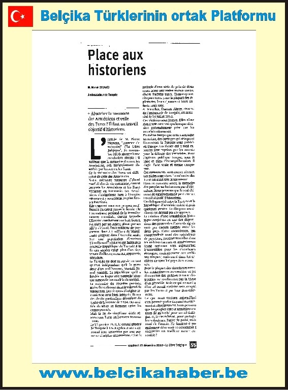 T.C Brüksel Büyükelçisi N. Murat Ersavcı 1915 olaylarına ilişkin olarak Aralık ayında De Standaard gazetesinde yayınlanan ve gerçekleri yansıtmayan Gilbert Roox imzalı makaleye cevaben anılan gazeteye göndermiş olduğu, yazıyı okurlarımızın bilgisine sunuyoruz.