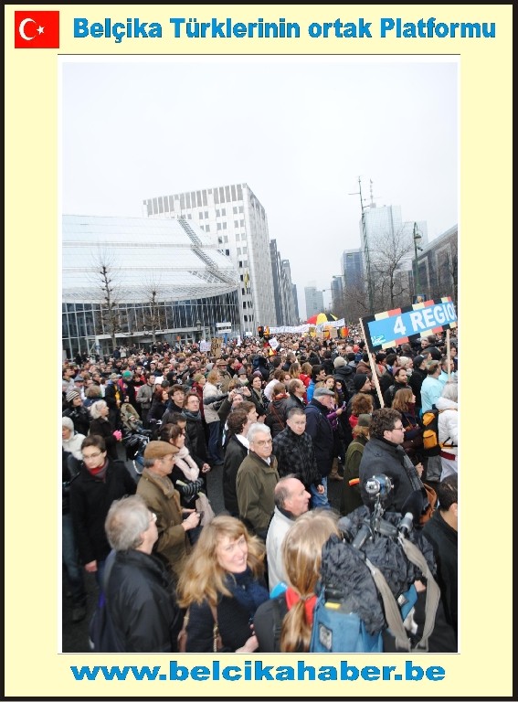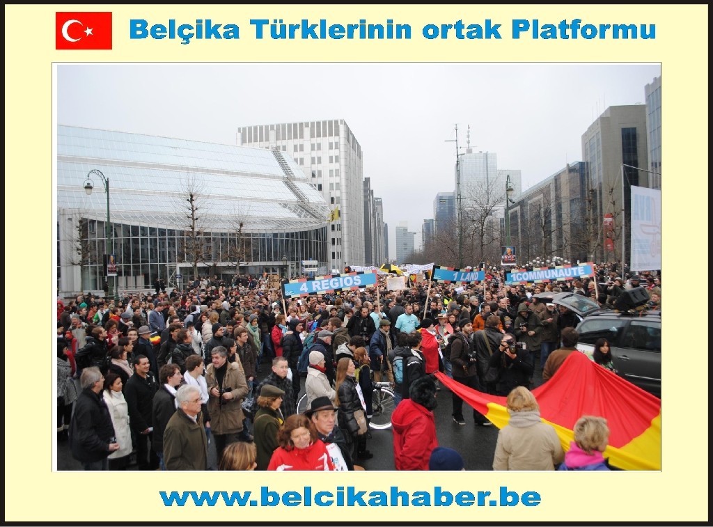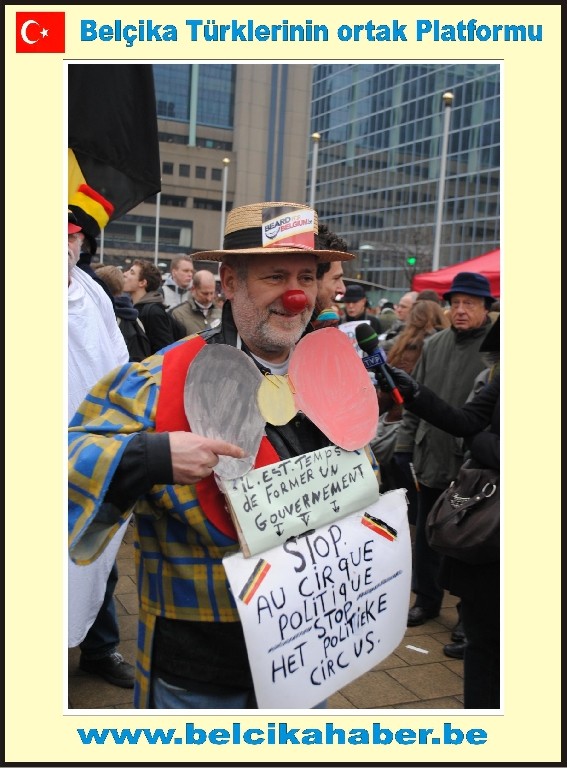 Belçika ve Avrupa’nın Başkenti Brüksel Nord istasyon önünde erken saatlerde birikmeye başlayan Belçikalılar, ‘siyasi krizi protesto’ amacıyla ellerinde Belçika bayrakları ve siyasileri tenkid eden pankartlarla kilometrelerce yürüdüler. Organizatörlere göre 45 bin, polise göre ise 35 bin kişinin katıldığı yürüyüş renkli görüntülere sahne oldu. Dağıtılan bildirilerde ‘oluşan siyasi krizin ekonomik krizi etkilediğini, işsizliğin gittikçe arttığını ve orta gelirli ailelerin yaşam şartlarının zorlaştığı” yazılıydı. Belçika’nın bölünmesini istemeyen gruplar Federal tapı ve 4 yerel hükümet formülünün devam etmesini dağıttıkları bildiriler ve taşısıkları pankartlarla dile getirdiler. NVA Partisi Başkanı Bart De Wever’i kınayan pankart ve karikatürler dikkat çekti.
