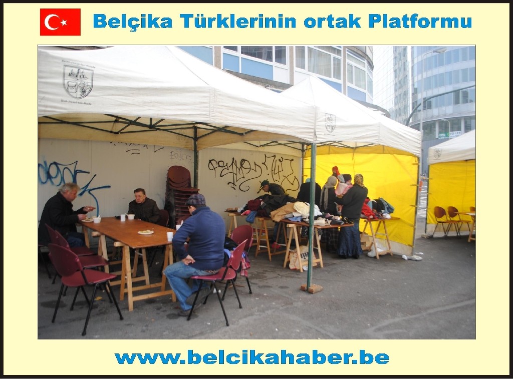 Saint Josse Belediyesi tarafından her ayın son Pazartesi ‘Evsizlere’ Brabant’ta kurulan bir çadırda yemek ve giyecekler verilmekte.