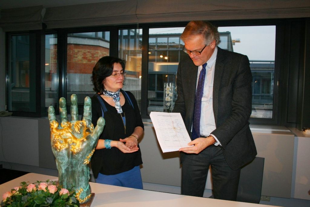 Ziyarette önce ünlü aktivist Enca Caen tarafından yapılan bir el büstü(Her Türlü Hakksızlığa Karşı Flaman Eli-Vlaamse Hand Tegen Elke Vorm Van Onrecht) takdim edildi. Delegasyon adına vakıf başkanı Marco Van Wesemael ayrıca hukuk sistemi içersinde belirledikleri arızaları içeren ´Manifest van het Slachtoffer-Mağdurun Manisfestosu´ adı altında hazırlanan bir mektup takdim etti.