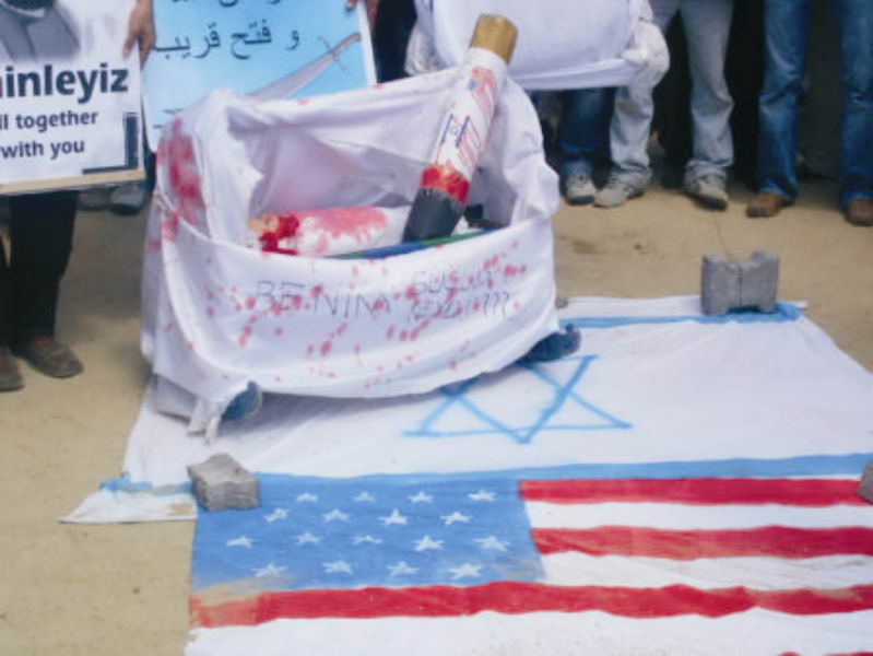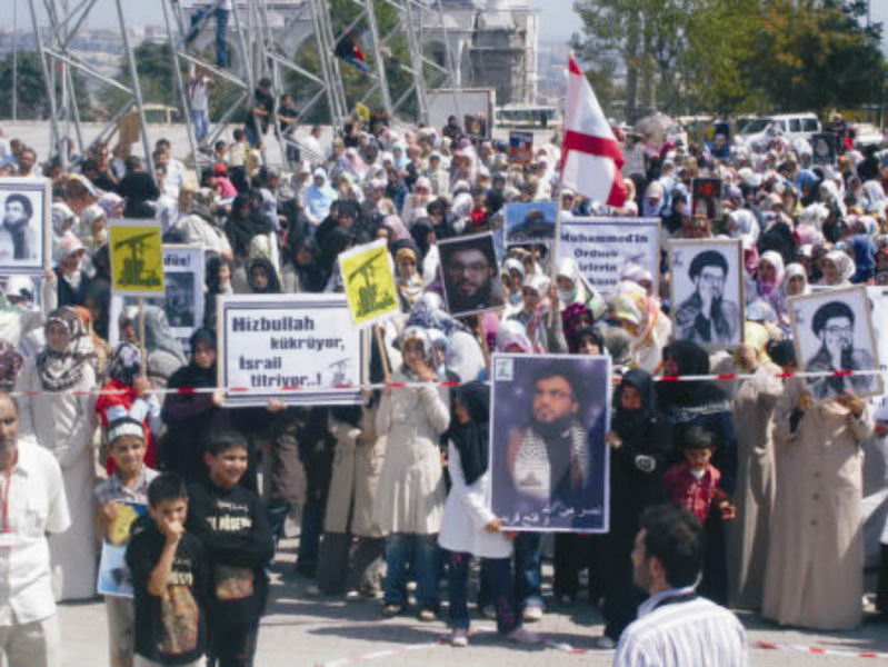 "Hizbullah Kükrüyor İsrail Titriyor" "Vur Vur Hizbullah Yıkılsın İsrail" "Oluk Oluk Kan Aksa, Kurtulacak El Aksa" "YaÅasın Filistin DireniÅimiz" "Siyonist Katiller Hesap Verecek" ""Nasrullah Nasrullah Nasrun Minellah" "Åii-Sünni KardeÅtir, Siyonistler KalleÅtir" Muhammed'in Ordusu İsrail'in Korkusu" "La İlahe İllalah İsrail Aduvullah" "Kahrolsun Amerika" "Her Gün AÅura Her Gün Kerbela" sloganlarının atıldıÄı protesto gösterisinde Türkiye Caferileri lideri Selahaddin Ãzgündüz bir basın açıklaması okudu. Ãzgündüz basın açıklamasında siyonist iÅgal güçlerinin Filistin'e karÅı sürdürdüÄü katliamları lanetleyerek, Filistinli ve Lübnanlı mücahidlerin kahramanca direniÅinden övgüyle söz ettikten sonra Lübnan Hizbullah'ının İsrail'e karÅı sürdürdüÄü savaÅın temel amacının Filistin'e yardım etmek olduÄunu belirtti. Ãzgündüz konuÅmasını "Allah'ım Amerika'yı İsrail'i yok et, Filistinli ve Lübnanlı KardeÅlerimizi zafere ulaÅtır" duasıyla bitirdi. Lübnan ve Filistin bayraklarının taÅındıÄı protesto gösteride Hizbullah lideri Seyyid Hasan Nasrallah'ın büyük posterinin yanısıra Åehid Ahmed Yasien'in posterinin taÅındıÄı görüldü. Filistinli ve Lübnanlı Åehid çocuklar anısına, Hz. Hüseyin'in Åehid oÄlu Ali Asgar'ın kanlı kundaÄı ve beÅiÄi taÅındı. Altında "benim suçum neydi?" yazılı ve füze saplanmıÅ bir bebek maketinin de taÅınması gösteriye katılanları duygulandırdı. Protesto gösterisinin açılıÅında Kur'an-ı Kerim okuyan İmam Ali Camii İmamı Mikail Kayla'nın Filistinli ve Lübnanlı Åehidler ve mazlum çocuklar için okuduÄu mersiye gösteriye katılanları gözyaÅlarına boÄduÄu görüldü. Caferi hanımlar adına bir konuÅma yapan Sonsen Atam, "Biz ne Amerika ne İsrail'den korkarız. Zira biz Hz. Hüseyin ve Hz. Zeyneb'in yolunu takip etmekle, Åehadeti saadet biliyoruz, ama onlar bu dünya hayatını seviyorlar. Biz Filistin'deki ve Lübnan'daki kardeÅlerimizin acı ve ızdıraplarını yüreklerimizde hissediyoruz her zaman. Allah'ın izniyle bu zulüm ve acıların bütünüyle biteceÄi günleri de yakında göreceÄiz" dedi. Protesto gösterisinde Amerikan ve İsrail bayrakları ile İsrail baÅbakanı Ehud Olmert'i temsil eden büyük bir kukla yakıldı. Tekbir sesleri ve "Kahrolsun İsrail" sloganları arasında yakılan bayrak ve kuklalar protesto gösterisine katılanların heyecanını yükseltti. Zeynebiye haber.