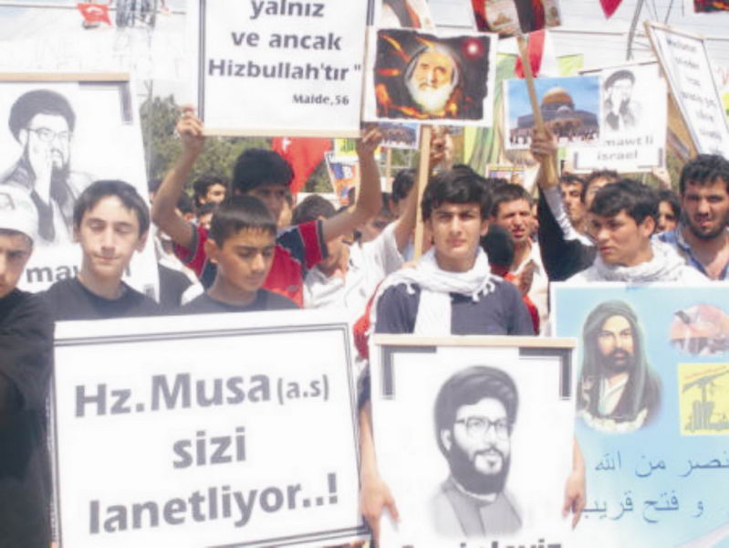 "Hizbullah Kükrüyor İsrail Titriyor" "Vur Vur Hizbullah Yıkılsın İsrail" "Oluk Oluk Kan Aksa, Kurtulacak El Aksa" "YaÅasın Filistin DireniÅimiz" "Siyonist Katiller Hesap Verecek" ""Nasrullah Nasrullah Nasrun Minellah" "Åii-Sünni KardeÅtir,