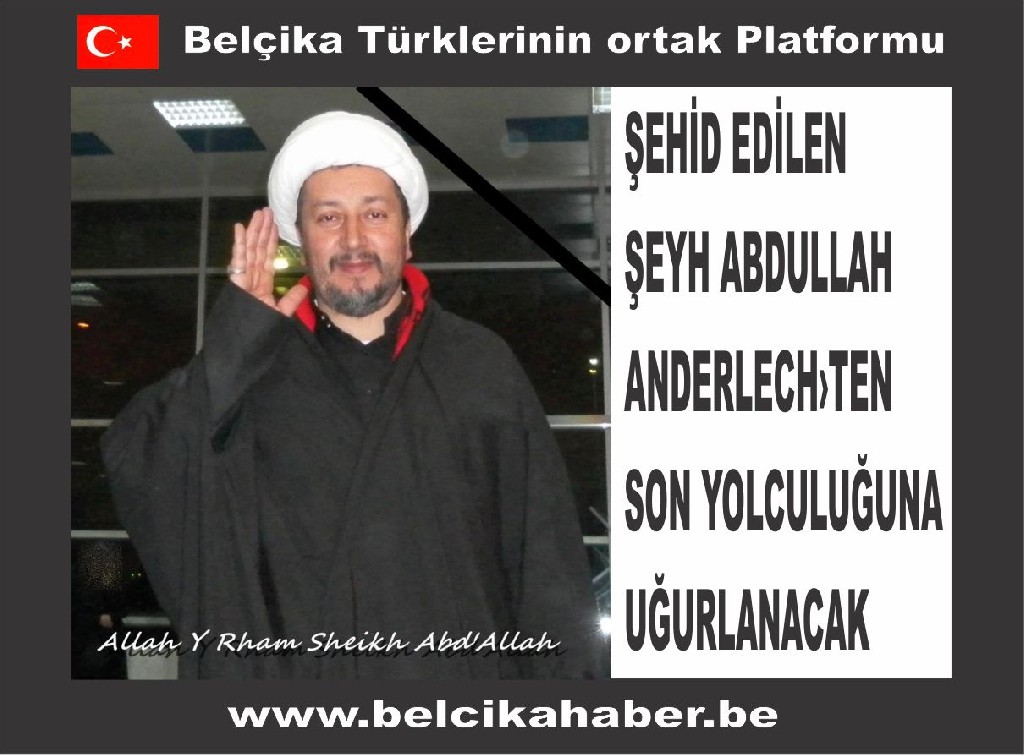 Bu gün öğle namazı sonrası saat 14,00'de Anderlecht Belediyesi önünde Terör kınanarak İmam Abdullah son yolculuğuna uğurlanacaktır.