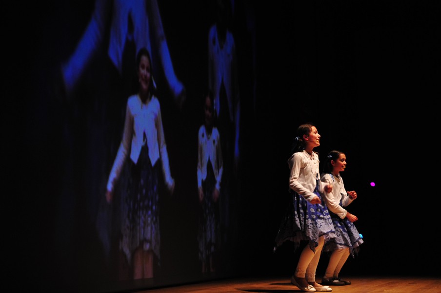 çocuklardan oluşan bir Kafkas dans grubu sahne alırken, üç öğrencinin hazırladığı pandomim