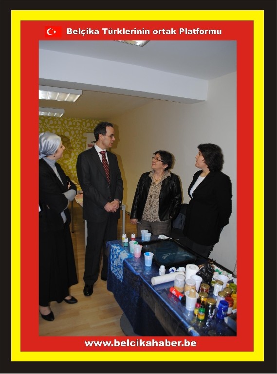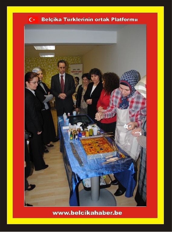 Turkish Lady’nin 10 Nisan 2011 Pazar günü, saat 14’de’ resmi açılışını yapacağı yeni hizmet binasında yapılan tanıtım töreninde bir konuşma yapan Brüksel Başkonsolosu Mehmet Poroy yapılan sanatsal çalışmalar ile ilgili olarak şu açıklamalarda bulundu: “Başkonsolosluğumuz ve Milli Eğitim Bakanlığımızın ortak projesi ile Yurt dışında yaşayan hanımlara yönelik ‘El becerilerini geliştirme’ye yönelik sanatsal faaliyetler doğrultusunda bu etkinlikler yapılmakta. Ankara Olgunlaştırma Enstitüsünden gelen ve 20 günlük kurs süresinde bayanlarımıza ‘Ebru ve Takı’ sanatını öğreten Sayın Fatma Günal ve Yurdagül Güner hocalarımıza, bu sergiye ev sahipliği yapan Turkish Lady Genel Koordinatörü Sayın Derya Alıç’a ve bu kurslara katılarak güzel ürünler ortaya çıkaran tüm kursiyer bayanlarımıza teşekkür ediyorum. Kısa zamanda çok güzel eserler ortaya koyan kursiyerlerimiz elde ettikleri ürünleri bu gün burada sergilemekteler. Hepsi birbirinden güzel eserler. Bu kursların amacı bayanların boş vakitlerini değerlendirerek hem sanat öğrenmeleri hem de bu sanatlarıyla elde ettikleri maddiyatla az da olsa ekonomilerine katkı sağlamaları bakımından önemlidir. Buradaki sanatsal ürünlerin malzemeleri ülkemiz Türkiye’den getirildi. Eğitimler ücretsiz verildi. Bu tür kursları farklı sanat dallarında sürdürmeye devam edeceğiz. Sivil toplum kuruluşlarımızın bu yöndeki taleplerine her zaman açığız” dedi.