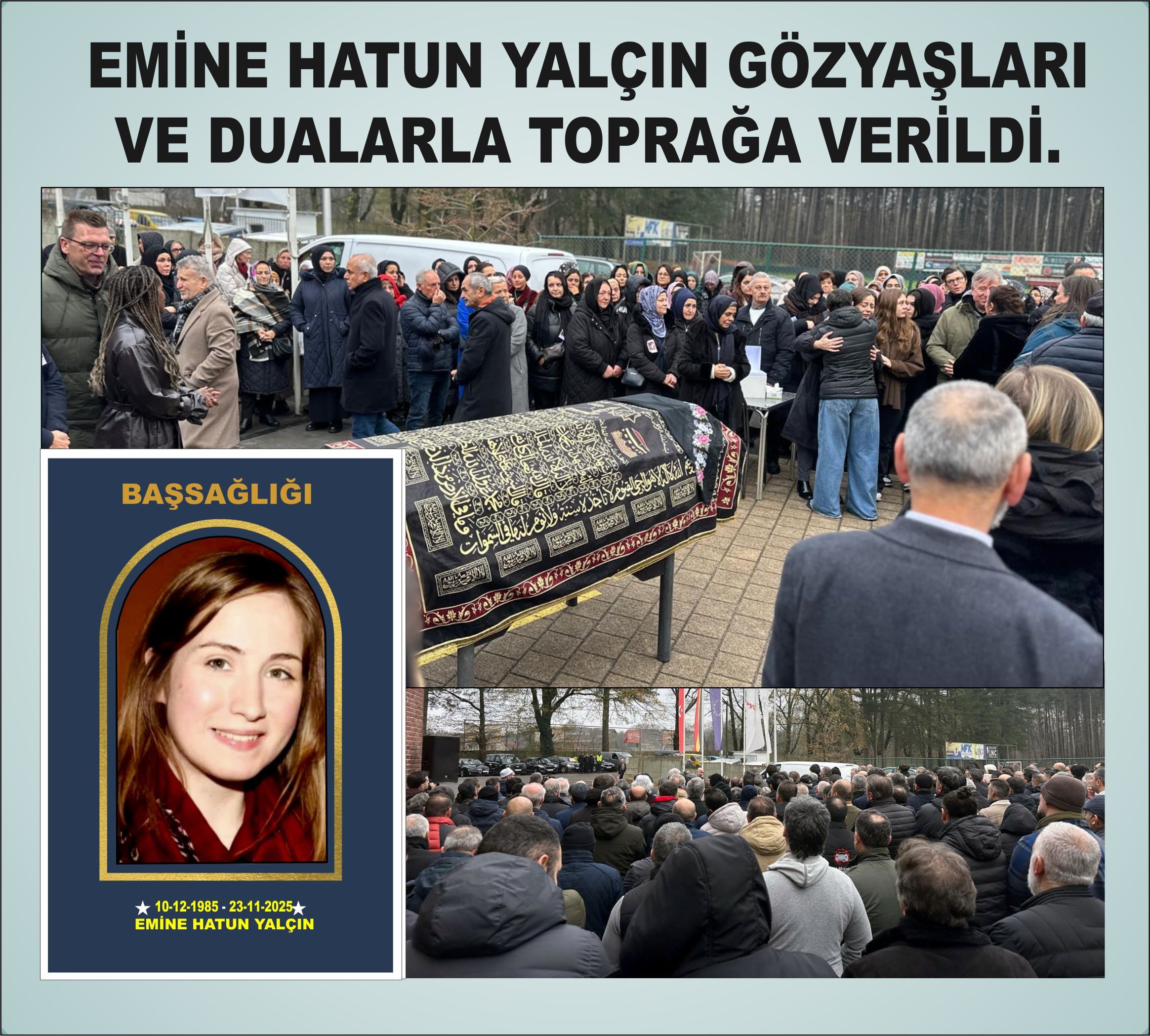 Emine Hatun’un cenaze namazı 25 Kasım 2025 Salı günü, ikindi namazını müteakiben Heusden Zolder Selimiye camiinde kılındı. Cenaze namazına Türkiye Cumhuriyeti Anvers Başkonsolosu İsmail Sefa Yüceer olmak üzere yüzlerce vatandaşımız katıldılar.